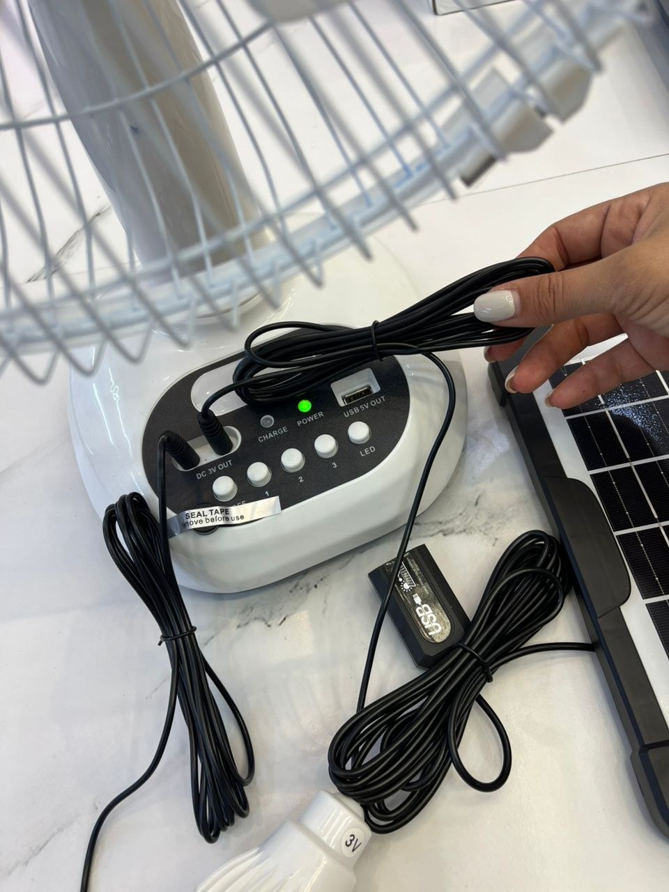 پنکه برقی شارژی برند مطرح XLEEN مدل XL8052 دارای پنل خورشیدی 4 وات نور ثابت روی بدنه 2عدد لامپ با سیم بلند و دکمه خاموش روشن 3شدت باددهی حالت ثابت یا چرخشی حالت شارژی و یا مستقیم برقی همراه با آداپتور کابل متصل و کابل تایپ سی جداگانه بسیار با کیفیت